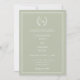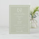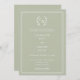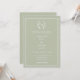 A soft sage green colored background decorated with a hand drawn wreath. White colored frames and text. Personalize and your monogram initials, names and details.