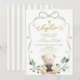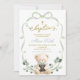 Invitación Sage Greenery Bow Coquette Bear Baptism