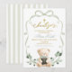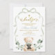 Invitación Sage Greenery Bow Coquette Bear Spanish Bautizo