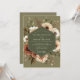 This design showcases a romantic botanical arrangement with creamy white anemones and rich terracotta peonies. Sprigs of delicate greenery and small berries are artfully placed against a deep sage green background. The painterly style creates a sophisticated, earthy, and moody atmosphere for an elegant union.