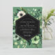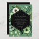 Experience an atmosphere of moody elegance with this stunning botanical design. A sophisticated arrangement of white anemones and lush, verdant greenery unfolds across a deep sage green background. The soft, watercolor artistry creates a romantic and dramatic feel, perfect for a refined union.