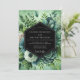 Embrace a botanical dream with this elegant and modern design, setting a lush and verdant tone for your special day. A stunning arrangement of painterly succulents, chrysanthemums, and delicate foliage unfolds in rich shades of sage green, deep teal, and soft cream. This moody, watercolor aesthetic creates an atmosphere of sophisticated natural beauty.