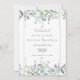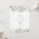Una elegante invitación de boda todo en uno con salvia de bonito y hojas de lilo que se tambalea sobre un elegante marco plateado que encierra los detalles de tu boda en un elegante texto clásico. Personalice con toda su información especial sobre el día de la boda, incluyendo su RSVP, alojamiento y detalles adicionales. Diseñado por Thisisnotme©