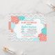 Floral Salmón y flores turquesas decoran este vibrante Baby Shower Invitation. Los colores son el fondo perfecto para un niño o una ducha Chica. También se puede usar para mellizos. El chevron gris claro complementa la disposición tipográfica moderna de la invitación. ¡También es genial para las duchas de novias y los Brunches!