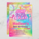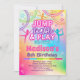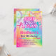 Invitación a la fiesta de cumpleaños con temática de gimnasia en brillantes colores arcoiris para chicas.