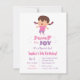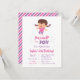 ¡Salta para la Alegría! ¡Es un día especial! Esta invitación tiene un lindo chica con cola de pony rebotando en la palabra Saltar hasta que las letras U y M sean comprimidas. Esta invitación es perfecta para los fiestas que se celebran en parques infantiles interiores y casas de rebote. La paleta de colores rosa y morado hace que esta invitación sea genial para los chicas de cumpleaños. Personalice fácilmente los datos de su fiesta.