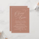 Anuncie su gusto por el estilo con nuestro hermoso diseño moderno termostato terciopelo marrón (Alegres a amar) parejas ducha tarjeta de invitación a la celebración. Con un diseño sofisticado pero lúdico, esta invitación seguramente marcará el tono para un evento inolvidable. La tarjeta de invitación incluye un moderno diseño de escritura romántico minimalista, añadiendo un toque de elegancia eterna a su celebración. Diseñado por TeeshaDerrick