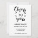 Una invitación de 70 años, que podrás personalizar fácilmente con los detalles de tu fiesta. Esta invitación de "Cheers to 70 años" puede ser fácilmente personalizada a la edad de cumpleaños que necesita. La parte de atrás de esta invitación a cumplir 70 años tiene un hermoso diseño de purpurina de oro. Por favor, tenga en cuenta que no hay purpurina real en la invitación de la fiesta.