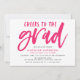 Invite a los huéspedes a su fiesta de graduación con nuestras elegantes y modernas animaciones para la fiesta de graduación de Grad. La moderna fiesta de graduación invita a incluir la frase "Saludos al grado" en un guión con letras picantes y letras a mano con los detalles de su fiesta que se muestran a continuación. Las invitaciones a la fiesta de graduación se revierten a un patrón de puntos abstractos de color rosa y blanco. ¡Perfecto tanto para fiestas de bachillerato como universitarios!