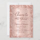 Celebre con estilo con esta moderna invitación de cumpleaños de Rosa Purpurina de oro "Saludos a 90 años". Esta moda y el diseño femenino presentan detalles brillantes de purpurina de oro rosa, una elegante escritura de caligrafía de cola de hebrada y un suave fondo de Relieve metalizado metálico rosa rosado. Perfecto para una glamorosa fiesta de cumpleaños de 90 años o cualquier evento hito —fácilmente personalizable para una celebración de 40, 50, 60, 70 o incluso 80 años.