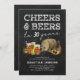 Marcar 30 años merece una celebración única y nuestras invitaciones rústicas de cumpleaños número 30 para adultos son sólo eso! Con un fondo de pizarra vintage, motivos acuáticos de cervezas, un pretzel y un barril de cerveza. ¿El lema? 'Saludos y cervezas a 30 años'. Personalice instantáneamente con nuestra plantilla de fiesta fácil de usar.