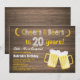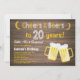 Rústica sorpresa Saludos y Cervezas Invitación a los 20 Años. Cumpleaños de adultos. Cumpleaños de la cerveza para los hombres. Fondo blanco y negro de pizarra. Para una mayor personalización, haga clic en el botón "Personalizar" y utilice nuestra herramienta de diseño para modificar esta plantilla.