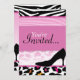 Esta invitación del rosa salvaje y del negro que ofrece los puntos y la cebra de neón del leopardo raya, es perfecta para cualquier señora noche, cumpleaños, fiesta de Bachelorette, o celebración de la cena.