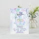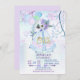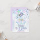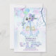 La invitación a la fiesta de cumpleaños Wild One incluye una tepee de color azul con plumas tribales y acentos florales. un ramo de globo pastel y pequeños puntos de polka rosa sobre un suave fondo azul y lila. La información del fiesta está lista para su personalizar.