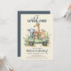 Celebra tu primer cumpleaños con esta encantadora invitación de temática safari, con un auto de safari acuarela lleno de un adorable león, elefante, mono y jirafa. Los suaves colores pastel y la exuberante vegetación crean un ambiente cálido y caprichoso, perfecto para una aventura alegre. La acuarela pintada a mano añade un toque dulce y artístico que gustará a las familias y a los amigos. Fijar el tono para una celebración salvaje y maravillosa con este bigote de excelente elaboración!