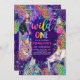 Wild One Safari Neon Rainbow Cheetah Invitación al cumpleaños Todos los diseños son © PIXEL PERFECTION FIESTA LTD