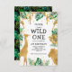 Invitación Salvaje Un Safari Primer Cumpleaños Oro Verde Negr