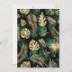 Celebra el primer cumpleaños de tu pequeño salvaje con esta invitación temática de safari en la jungla, con animales de Relieve metalizado de imitación dorados (jirafa, león y monos), follaje de oro y selva verde, y una rociada de confetti de oro sobre un fondo negro. Añada el nombre y los detalles del fiesta de su hijo en blanco y dorado. Un patrón coordinado de follaje de jungla en verde y oro sobre fondo negro decora la parte trasera de la tarjeta.
