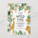 Invitación Salvaje Una Selva Safari Oro Verde Primer cumpleañ