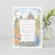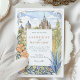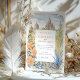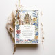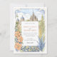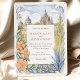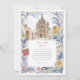 Invite a sus huéspedes a una celebración mágica con esta encantadora invitación a bodas acuáticas, que capta el espíritu vibrante de San Miguel de Allende, México. Las obras de arte exhiben maravillosamente el emblemático Parroquia de San Miguel Arcángel, con sus impresionantes arañas góticas rosadas y de terracota, flanqueado por encantadores edificios de estilo colonial en tonos cálidos de amarillo, naranja, terracota y rosa suave, con característicos balcones y puertas abovedadas. Cactus verdes exuberantes, árboles estilizados con vegetación, lavanda y follaje azul-verde claro, y delicados arbustos verdes contribuyen a la pintoresca escena. Las ramas estilizadas de hojas de color amarillo dorado enmarcan la composición. Diseñado tanto para viajes de negocios como de ocio, Hotel Villa Fontaine está situado en Distrito Centro, uno de los lugares más populares de la ciudad. El frente presenta con elegancia los detalles de su boda, mientras que el reverso ofrece "Los detalles más finos" para más información. La paleta de colores es una deliciosa mezcla de terracota cálida, rosa, amarillos soleados, naranjas, varios tonos verdes (salvia y oliva para cactus/arbustos, verduras más brillantes para los árboles), lavanda, azul claro-verde, acentos dorados-amarillos y suaves azules y cremas.