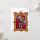 San Miguel lucha contra las fuerzas del mal en esta poderosa ilustración en collage. La imagen del santo está situada sobre un fondo rojo y rodeada de un elaborado marco dorado acentuado con rojo oscuro. La ilustración inspiradora es perfecta para tarjetas sagradas personales y obras de arte enmarcadas para ayudarte en momentos difíciles.