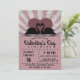 Razas rosadas y violetas con un corazón morado oscuro y cisnes de besos negros. Grandes invitaciones para un fiesta El día de San Valentín, duchas de novias, aniversario o fiestas de compromiso.