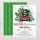 Invitación a la Fiesta de Piscina Summerween de Sandía del Segador - ¡Celebra el verano con el Segador! Esta invitación presenta a un divertido Segador con la clásica capa negra y la guadaña comiendo sandía contra un exuberante follaje tropical. ¡Perfecto para una fiesta de Summerween asesina! Diseñado para amantes de Halloween y entusiastas del cine de terror. Con fuente vintage, grunge y desgastada, personaliza esta plantilla de invitación de fiesta de verano editable con los detalles de tu evento. En la parte posterior encontrarás un patrón de corteza de sandía en verde oscuro y claro. Disponible para ordenar como invitaciones impresas o como descarga digital instantánea que puedes enviar por correo electrónico, mensaje de texto o redes sociales.