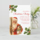 Celebre la temporada navideña con esta encantadora invitación a una fiesta de Navidad que presenta una ilustración vintage de Papá Noel sosteniendo regalos. El diseño retro, completo con acentos de acebo y una parte posterior a rayas de bastón de caramelo, evoca un espíritu navideño nostálgico, perfecto para crear una atmósfera cálida y festiva. Personalice con los detalles de su evento para hacerlo único. Esta encantadora invitación es ideal para cualquier reunión navideña, agregando un toque de encanto clásico de Navidad y un espíritu alegre a su celebración.