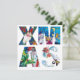 Alfabetización colorida, pintorescos Navidades artísticos diseño monograma con pinturas acrílicas originales, Serenata de Hombre de Nieve y Serenata de Pingüino, Santa Claus tocando violín en la noche de invierno nevada, luna amarilla, estrellas, búho, ornamentos florales, plantas de invierno, árbol de Navidad, globos, bayas huecas en colores brillantes rojo, verde, blanco, azul y amarillo.