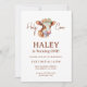 Celebra el primer cumpleaños de tu pequeña vaquera con esta adorable y divertida invitación. La acuarela está decorada con una vaca marrón y una corona floral, ideal para una temática fiesta dulce y caprichosa.