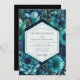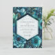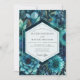 This elegant design features a dramatic arrangement of moody botanicals. A lush composition of sapphire blue and teal anemones, succulents, and rich foliage creates a stunning visual. The deep, painterly tones evoke a sense of sophisticated romance for your special union.