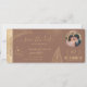 Avión de pasaje de pasaje de bodas de playa de destino Avión de oro de guardar la fecha con icono de corazón y avión con hojas tropicales. Añade tu foto. Color de fondo de la mousse de Mocha