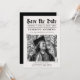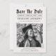 Una invitación a la fiesta de graduación de fotos del periódico "Save the Date" presenta un diseño elegante inspirado en el periódico que anuncia la próxima celebración de graduación. Incluye una foto del graduado y detalles clave como la fecha, hora y lugar del fiesta, todos presentados en un divertido diseño estilo titular. Esta invitación única y creativa añade un toque personal a la celebración de la graduación, mientras que los invitados tienen tiempo para marcar sus calendarios.