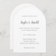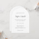 Invitación nupcial moderna con un diseño sencillo y mínimo con sus nombres en un guión grueso escrito a mano y sus detalles de evento en letra serif.