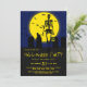Invitación Scary Skeleton Cat Bats Graveyard Scene Halloween