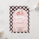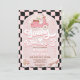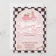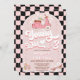 Invitación de tres cumpleaños al estilo Retro para un chica con moto, margaritas, patines, patines de rodillos, tablero de ajedrez onado y una cabecera de estilo retro no editable.