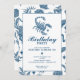 Inspired by classic vintage toile patterns, this elegant and feminine Scorpio themed invitation features hand-drawn scorpions, celestial suns, stars, and blooming roses in rich blue on crisp white. Whether you're planning a moody dinner party or an all-out celebration of their solar return, this design brings a bespoke, artistic touch to your invites. Personalize the text to make it an event to remember.