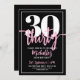 Presentamos una invitación a la fiesta de cumpleaños 30, sencilla y moderna, perfecta para celebrar este hito con estilo. El diseño elegante presenta un fondo negro audaz con un "30" prominente en la parte superior. Debajo, "Treinta" está elegantemente escrito en caligrafía de escritura, agregando un toque de sofisticación. El texto a lo largo de la invitación combina una mezcla de tipos de letra modernos y simples en blanco y rosa, creando un contraste llamativo contra el fondo negro. Un marco blanco limpio alrededor del borde completa el diseño con un toque de elegancia. Esta invitación es ideal para una moda y elegante celebración de los 30 años. El color de fondo, las fuentes y el marco se pueden personalizar para que coincidan con el estilo. Moderno Black 30th Birthday Party Invitation Treinta Años De Edad Negrita Sassy Girly Invite. Disponible en forma de invitación impresa, o como una invitación digital descargable que puede enviar por correo electrónico o que ha impreso localmente.