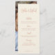 Disponible impreso o digitalmente. Script Boho Photo Cream Boda Menu Card. Un diseño totalmente personalizable en tonos boho de terracota sobre un fondo crema. Fácil de personalizar con sus detalles y reemplazar la foto de muestra en la parte posterior por la suya propia o borrar la imagen de ejemplo si no se requiere ninguna foto.