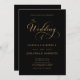 Elegante caligrafía Guión QR Código Doble cara Invitaciones de Boda Negra y Oro... Nuestro elegante oro en la invitación a la boda negra incluye un guión de caligrafía rápida combinado con una hermosa tipografía serif y sans serif para establecer un tono romántico para sus próximos nupcias. La parte posterior de la invitación también muestra el código QR de su sitio web boda, así como la propia dirección URL del sitio web, lo que permite a los invitados acceder fácilmente a RSVP en línea y ver todos los detalles que normalmente se envían en un paquete boda. Esta invitación a la boda de doble cara fue diseñada para ser a la vez elegante y ahorradora de tiempo... así como apta para los árboles. El gráfico de código QR de ejemplo y todo el texto de ejemplo (aparte de los elementos caligráficos gráficos) se pueden revisar fácilmente con su propia información sobre la plantilla de personalización.