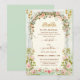 Impress your guests with a stunning script Floral arc Islamic-themed wedding invitation that showcases an exquisite Floral border and elegant Arabic calligraphy of the word 'Bismillah.' on the front and green on the backside of the card. Transform this user-friendly valima template into a truly unique islamic wedding stationery by effortlessly personalizing it with your event details.