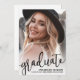 Simple Minimalist Graduation Announcement & Party Invitation. The front features a full-page photo with "Graduate" in black handwritten script across the bottom. Below it, the graduate’s name, "Class of 2025," and the school name are displayed over a subtle white gradient that fades seamlessly into the image, ensuring the text stands out.