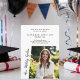 Una simple invitación de fiesta de graduación moderna con un acento “graduado” escrito a mano. Los cortes de foto inclinados elegantes añaden un detalle gráfico único.