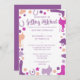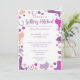 Estas divertidas invitaciones a la ducha de novias son perfectas para mujeres que aman los caballos y la equitación con gráficos de temática ecuestre y acentos florales de bonito en tonos violeta, lavanda, magenta y melocotón. Presentan el gracioso lema "Consiguiendo un hito" y todos los detalles de tu fiesta con letras moradas.