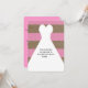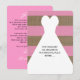 Esta hermosa tarjeta plana de invitación con poema ¿serás mi dama de honor? presenta un vestido de novia en blanco en la parte delantera con rayas de arpillera rosadas y bronceadas en el fondo. En la parte posterior de la invitación hay un hermoso poema ¿serás mi dama de honor?. Copyright henishouseofpaper