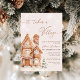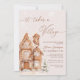 The It Takes a Village Navidades Winter Baby Shower Invitation con un tema de casa de jengibre y un ambiente encantador y acogedor en el maravilloso paisaje invernal. La invitación incluye una deliciosa y caprichosa aldea de casas de jengibre empolvadas con hielo de "nieve", rodeadas de delicados copos de nieve. Cada casa, decorada de manera intrincada con hielo, gotas y pequeños toques de dulces, representa el acogedor apoyo de amigos y familiares mientras se unen para celebrar el recién nacido. La paleta de colores es suave y acogedora, con tonos neutros en invierno. Es una invitación que promete una reunión llena de calor, amor y emoción compartida en medio de una acogedora escena de invierno. Elementos coincidentes disponibles.