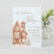 El It Takes a Village Navidades Winter Boy Invitation de Baby Shower con un tema de casa de jengibre y crea una encantadora y acogedora escena invernal de maravilla. La invitación incluye una deliciosa y caprichosa aldea de casas de jengibre empolvadas con hielo de "nieve", rodeadas de delicados copos de nieve. Cada casa, decorada de manera intrincada con hielo, gotas y pequeños toques de dulces, representa el acogedor apoyo de amigos y familiares mientras se unen para celebrar el recién nacido. La paleta de colores es suave y acogedora, con tonos neutros en invierno. Es una invitación que promete una reunión llena de calor, amor y emoción compartida en medio de una acogedora escena de invierno. Elementos coincidentes disponibles.