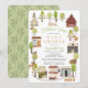 Esta tierna invitación a bañarse en una "aldea" sin diferencias de género incluye una aldea con casas, tiendas, una iglesia, árboles y animales de bosque. En el reverso, un fondo verde con motivos florales. Personalízalo para tus necesidades. Puedes encontrar productos coincidentes en mi tienda.