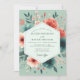 An artistic display of lush florals creates a romantic and modern ambiance. Vibrant coral peonies and soft peach anemones bloom against a soft seafoam green backdrop. Deep teal foliage adds depth and contrast to the painterly arrangement, evoking a sense of artistic elegance for your special day.