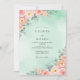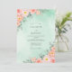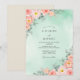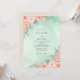 A soft seafoam watercolor wash creates a serene backdrop for delicate peach roses and ranunculus. Eucalyptus foliage adds a touch of sage green, enhancing the airy and romantic atmosphere. This ethereal design captures the essence of a blossoming meadow in the early morning light. The pastel color palette is perfect for a fresh seasonal aesthetic.